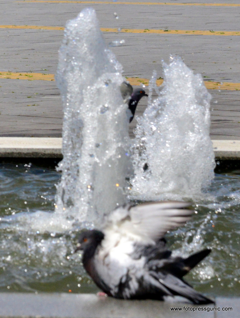 U centru Zrenjanina danas 27.aprila 2026.godine,proradila je gradska fontana koja je svojim slapovima unela svežinu i živost u gradski trg.Sunčevi zraci presijavaju se na kapima vode,dok su golubovi,kao pravi gradski stanovnici,odmah priredili svoje prvo ovogodišnje “kupanje”.