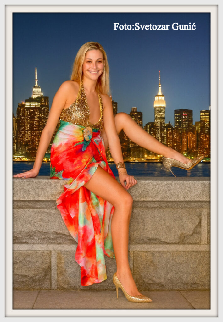 Zlatni odsjaj večeri,šapat grada iza leđa,a ona-u haljini što pleše bojama leta.