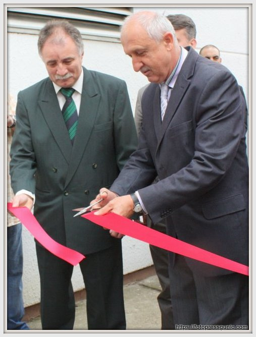 Fotografija:Mileta Mihajlov preseca vrpcu.”Trenutak kada se crvena traka pretvara u simbol početka,osmeha,aplauz,nada u očima prisutnih.