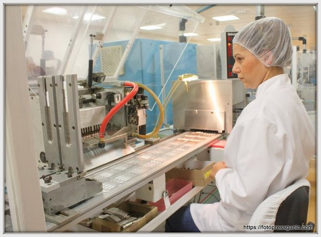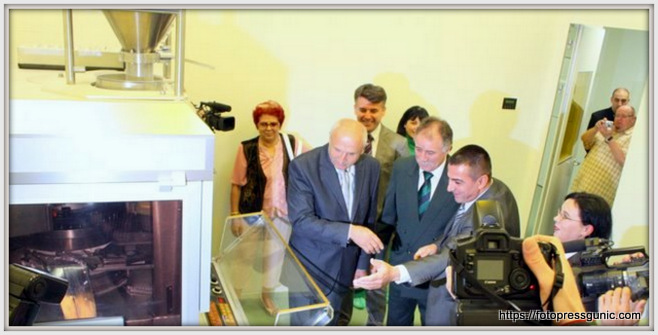 Fotografija:Direktor Deurić u obilasku pogona.”Pogled uprt ka mašinama kao da već vidi lekove koji će spasiti živote.Vizija u pokretu”.